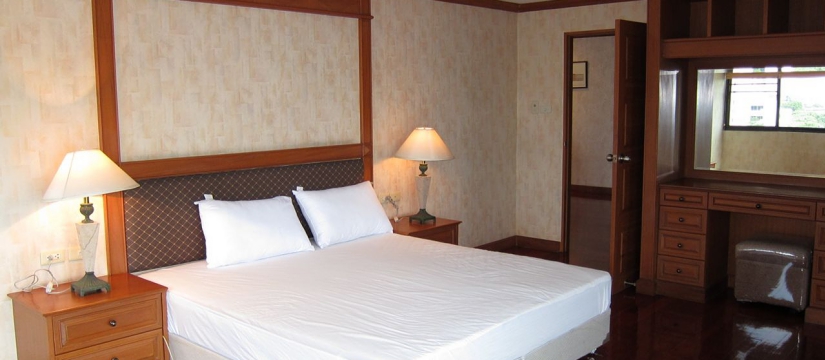 トンローソイ25を入り雅レストランのカーブを過ぎた一つ目の小道を入ると見えるオレンジ色の建物。オーナー様は日本で大学院を卒業されたというだけあって日本語が堪能です。そのオーナー様が最上階に住むこの物件は、プールやフィットネス等の施設は無いもののその立地やサービスが売りです。お部屋は全て2ベッドルームで間取りや内装は同じです。キッチンにはガスコンロ、キッチンとの動線を考えた洗濯場、シンクには浄水器と日本人の好みを考えた作りになっています。足りない電気製品や家具は入居時にリクエストすれば揃えてくれるし、古い電気製品やベッドマットレスも新しいものに交換してくれるとのこと。この物件築13年以上だが、地下駐車場への車専用エレベーターがあるタイでは珍しい物件。